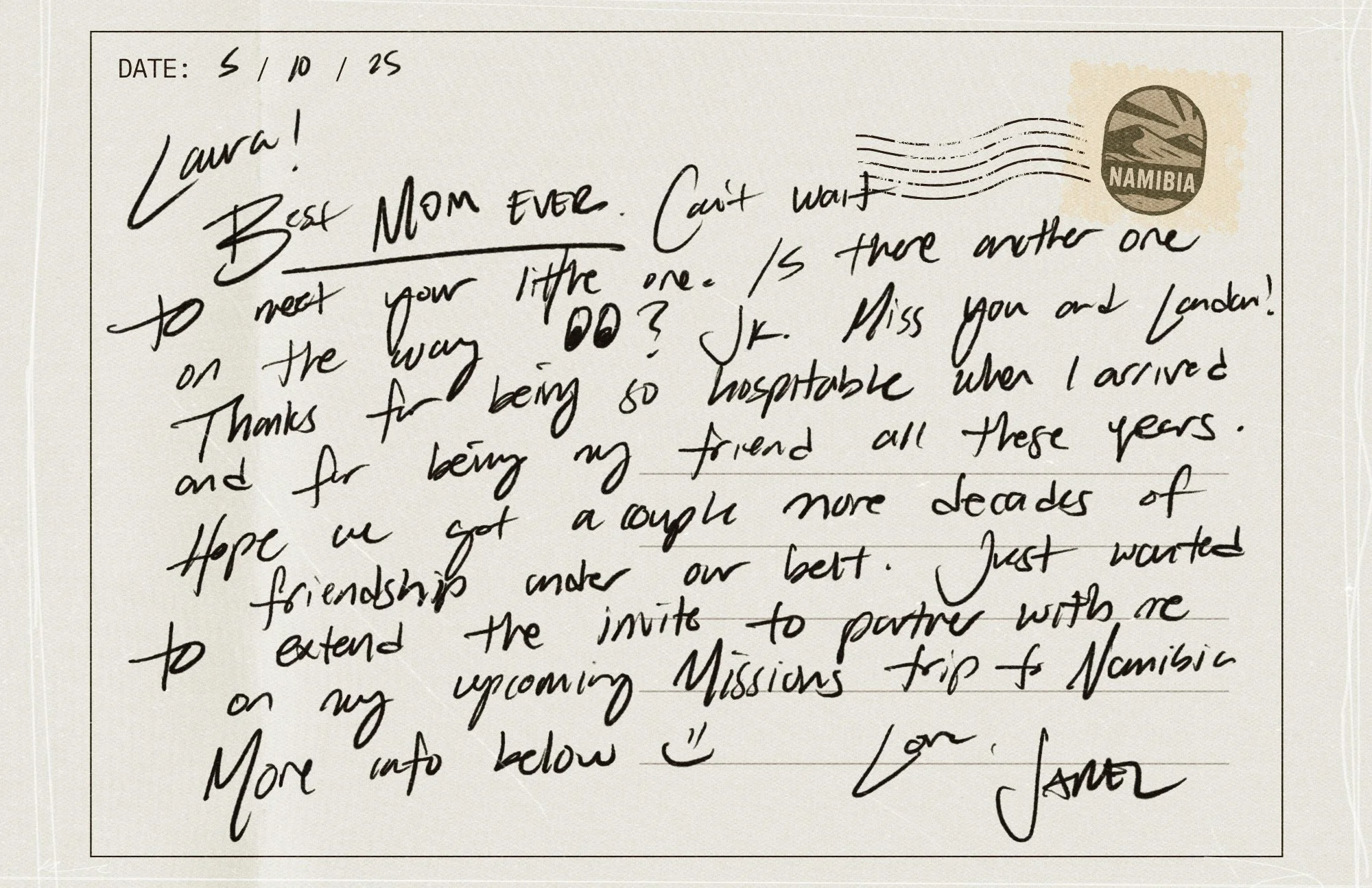 Thank you for being part of this journey. I can’t wait to share what God does in Namibia!