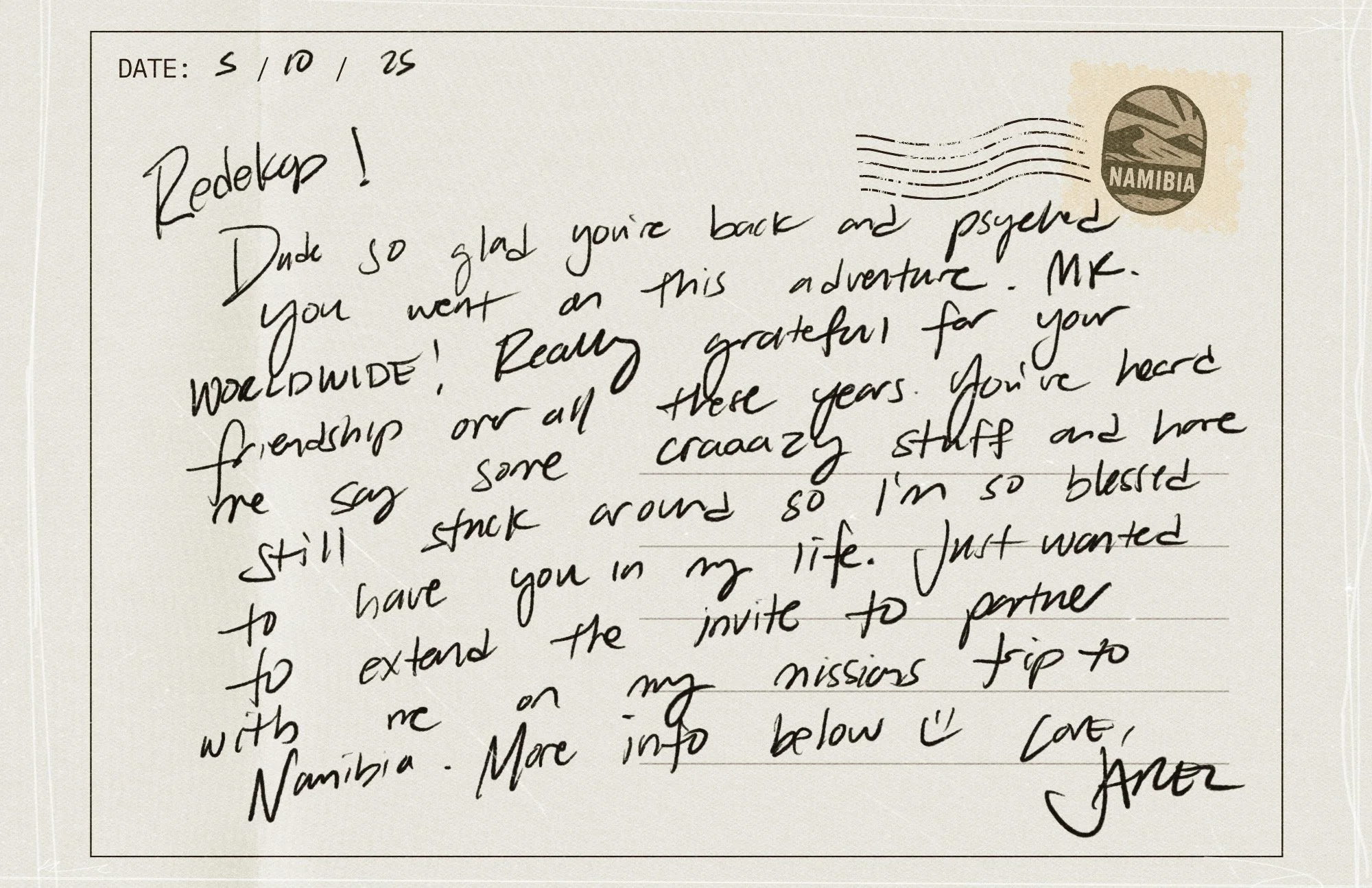Thank you for being part of this journey. I can’t wait to share what God does in Namibia!