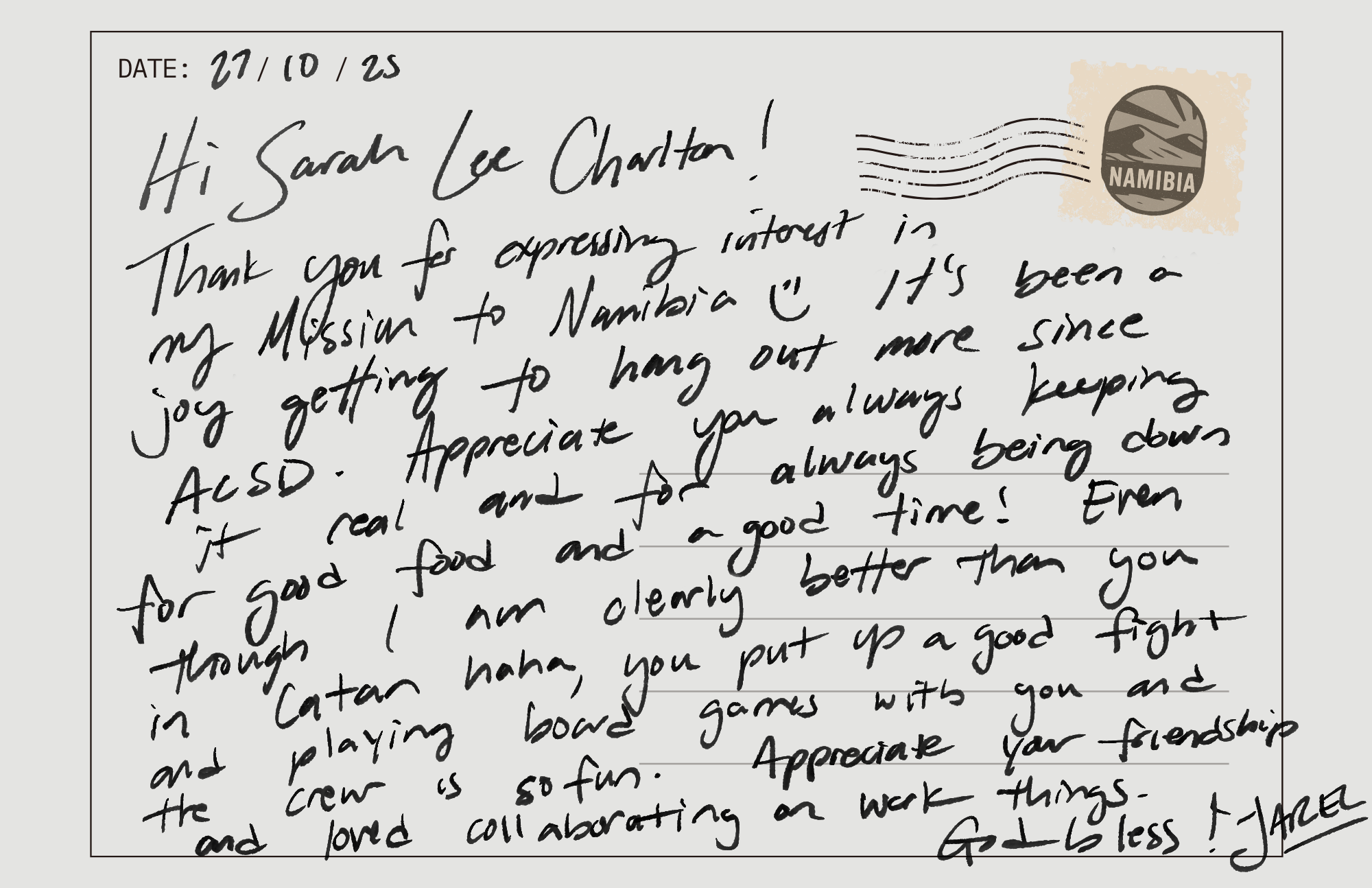 Thank you for being part of this journey. I can’t wait to share what God does in Namibia!
